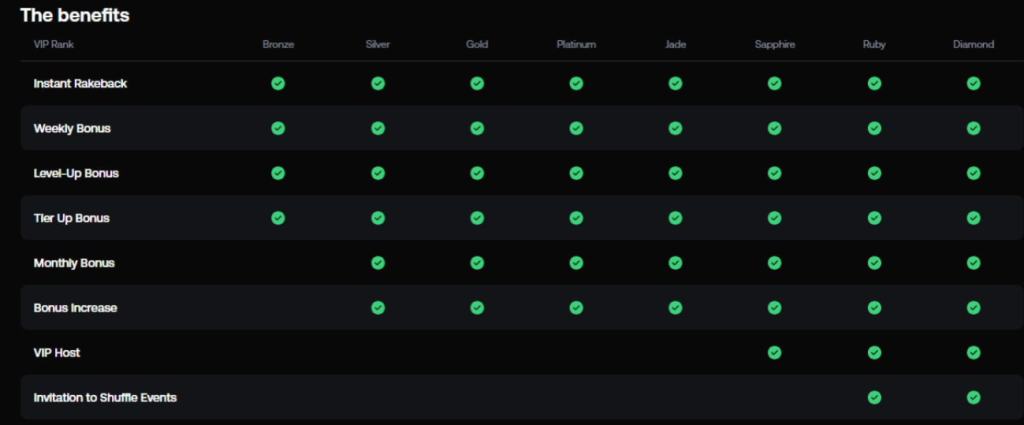 Shuffle awards a weekly bonus to qualified members. Check your VIP page where we send information about this bonus.