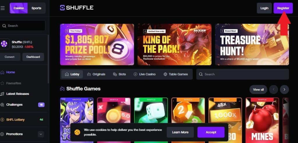 Welcome to our platform! We appreciate your choosing us. Hence, here’s an exciting offer! Activate the “SHFLVIP“ bonus code to redeem up to $1,000 free money to play more games and win huge prizes.